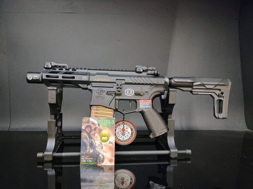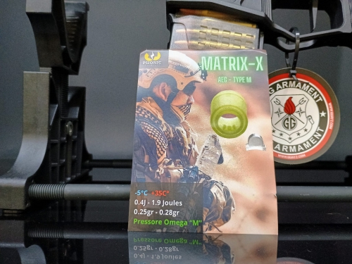 - Hop-up migliorato con gommino Psionic Matrix X e pressore modificato per maggiore stabilità e precisione. Consigliati pallini da 0.25g o 0.28g di alta qualità.