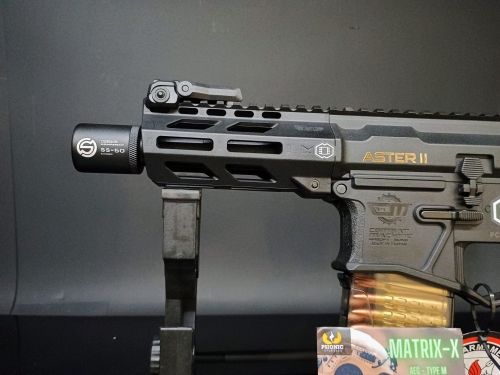 - Installata centralina GATE ASTER II Bluetooth Expert per migliorare la reattività del grilletto e garantire affidabilità sia in colpi singoli che in raffica. La centralina consente la programmazione via smartphone anche durante il gioco.